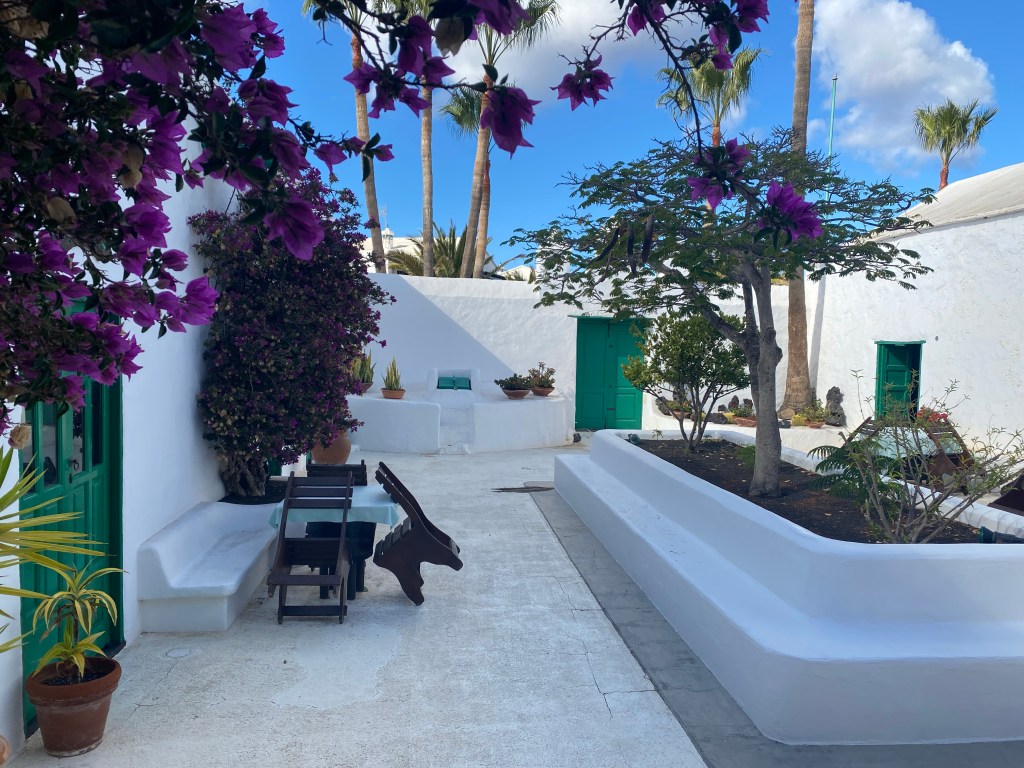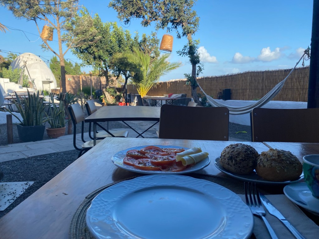 breakfast courtyard of Hotelito La Era Continued hiking west out of Yaiza, on more gravel roads. Similar landscape as yesterday, but no more wine plantations.