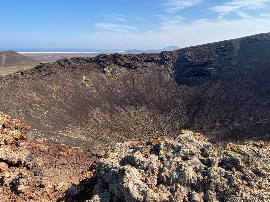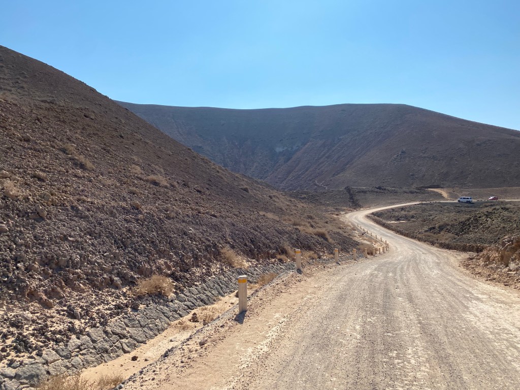 gravel road towards Lajares Past a little spectacular ‘crater’ and a cave.