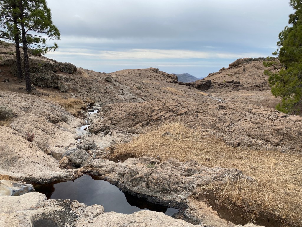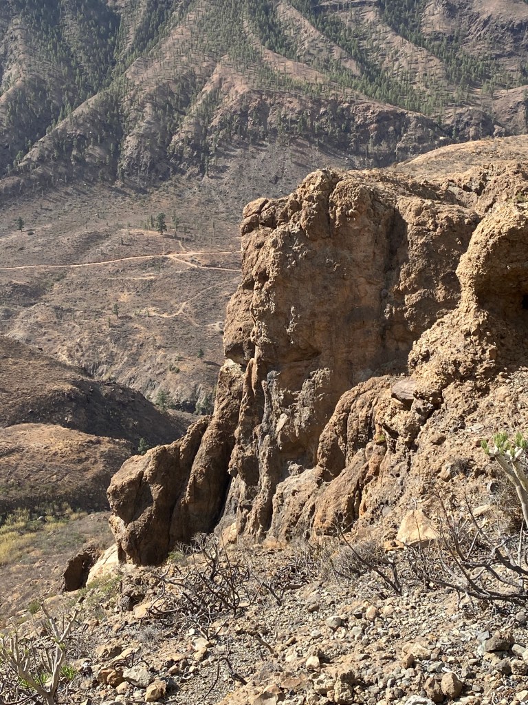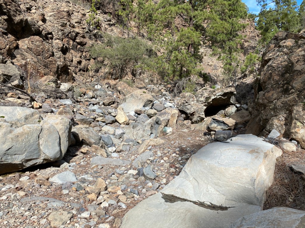 Barranco Seco, with about 2mm intermittant / unnoticably slow flowing water 😉 Then it’s steeply down along a ridge line in the pine forest, with views of the rocky canyons on both sides.