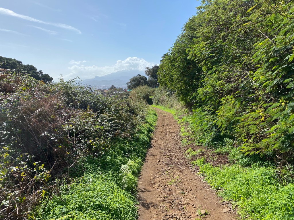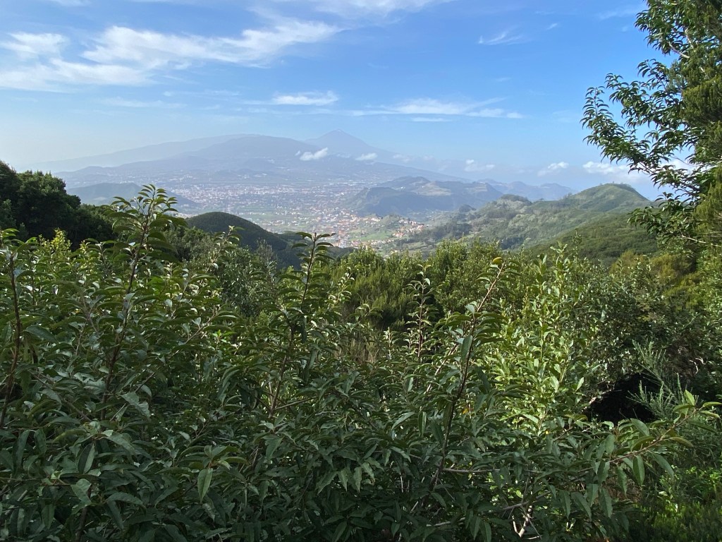 view of the coast by Puerto de la Cruz from La Caldera The path starts nice and easy with some downhill and flat parts through dense woods – with a lot of autumn-y chestnut trees.