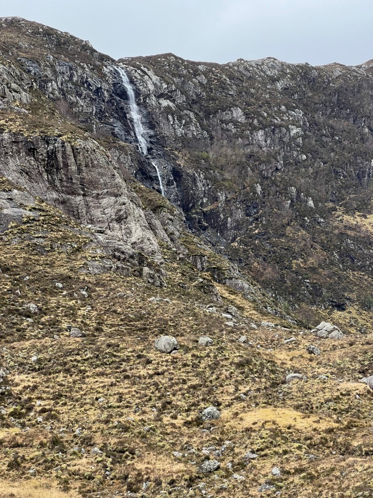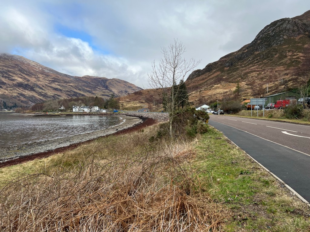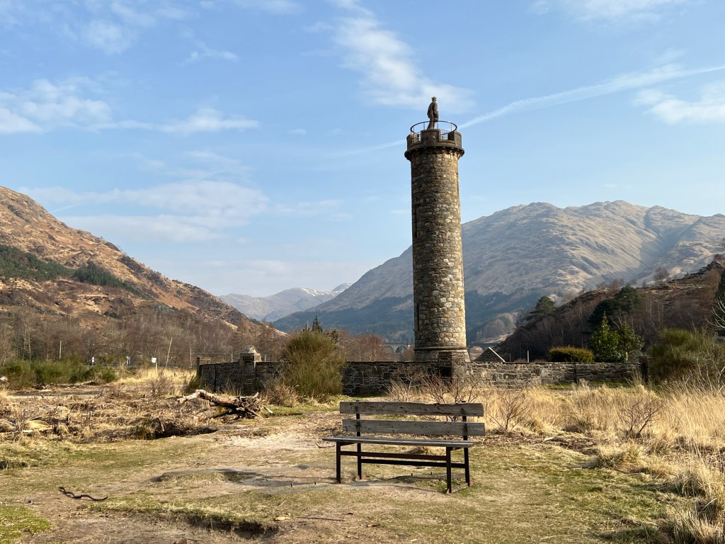Glenfinnan monument From thee monument, I cross the road and pass the visitor’s centre and café – all seems pretty closed (probably still too early in the season? and until the steam train is running again 4.4.). Through the carpark and then the railway viaduct – really quite impressive – and then I feel like I’m really on the way.