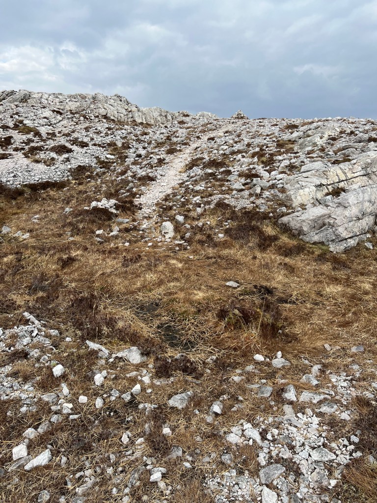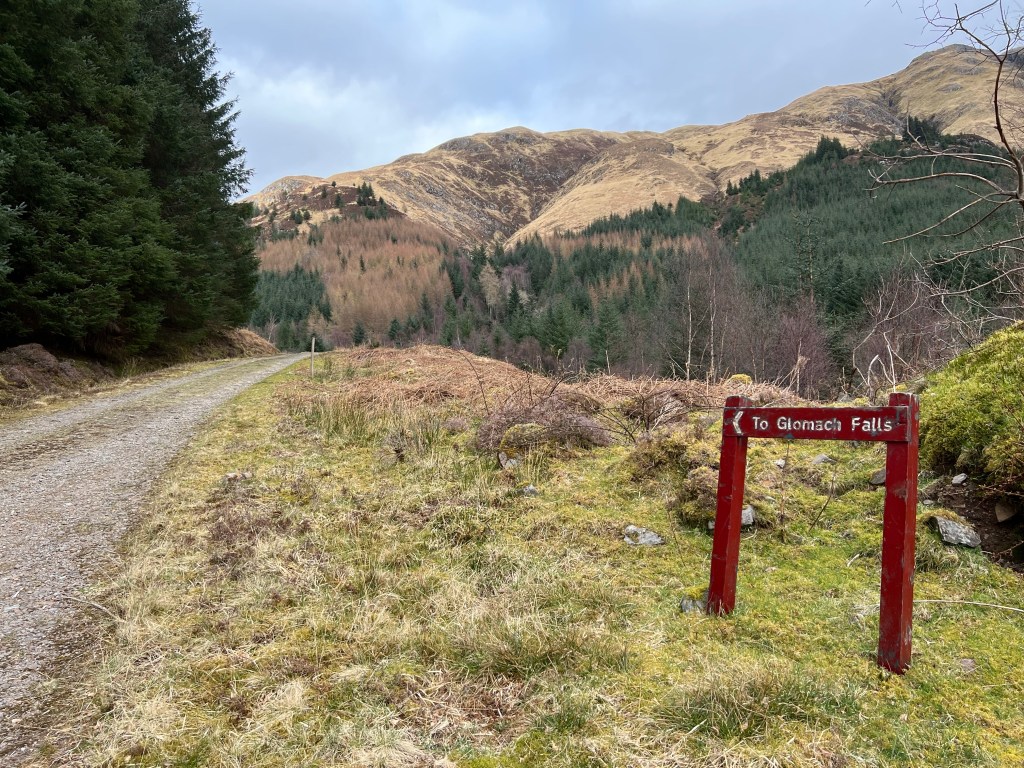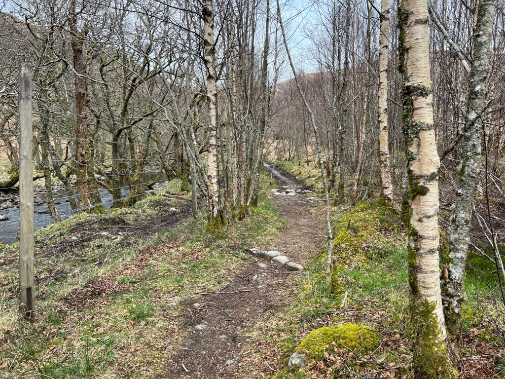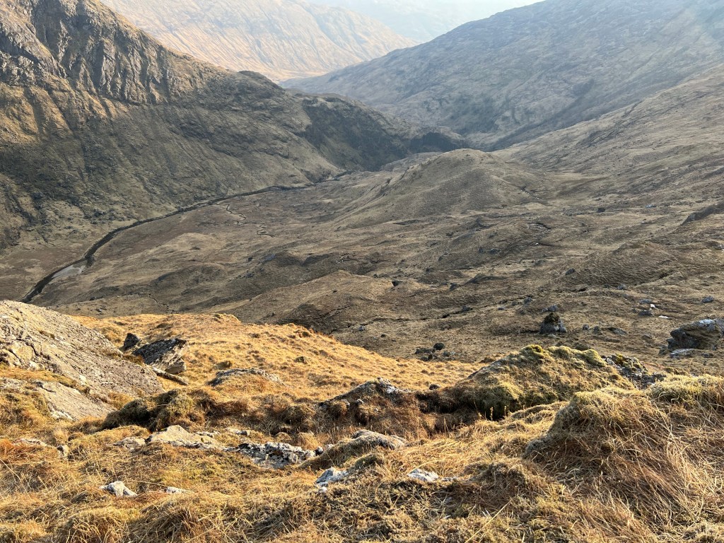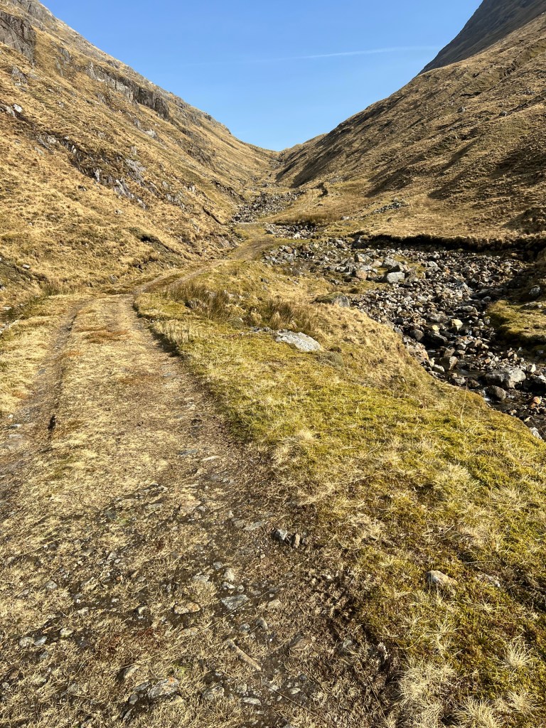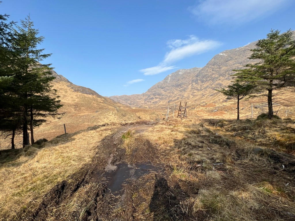 gate at Bealach Allt n’ Chaoruinn And then slowly make my way down. It’s not steep, but slippery mud in some places; and I constantly have to look out for the best line to walk… the path being only very faint and unclear.