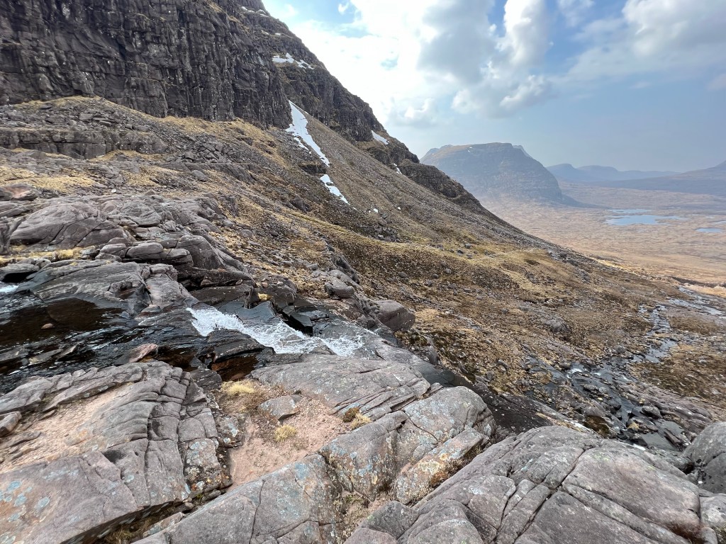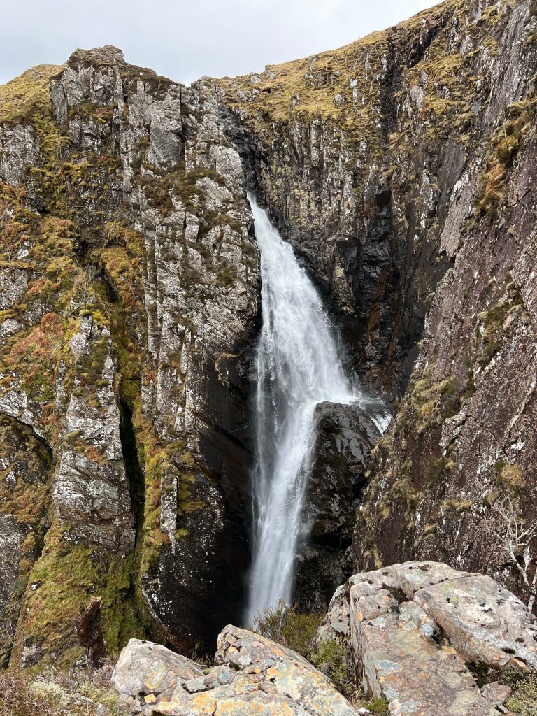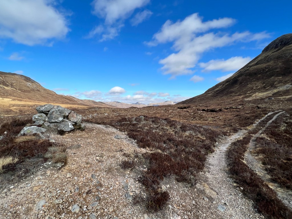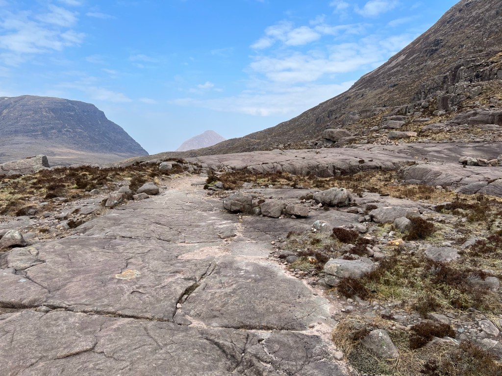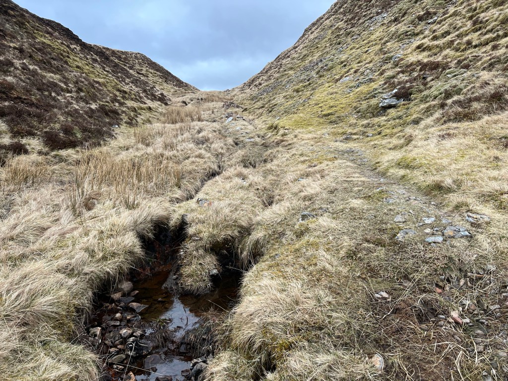 Corryhully Then the 4-wheel-drive tracks rise steeper up the sidevalley, before it transforms into just a faint single path. There is also the first unbridged rivercrossings, but with my hiking poles for balance, I manage to keep dry feet – for now. Reaching the ‘saddle’ – Bealach Allt n’ Chaoruinn, it flattens out and gets boggy… no way to keep feets dry here.