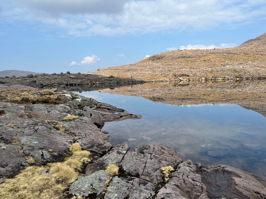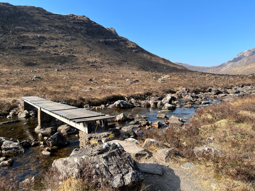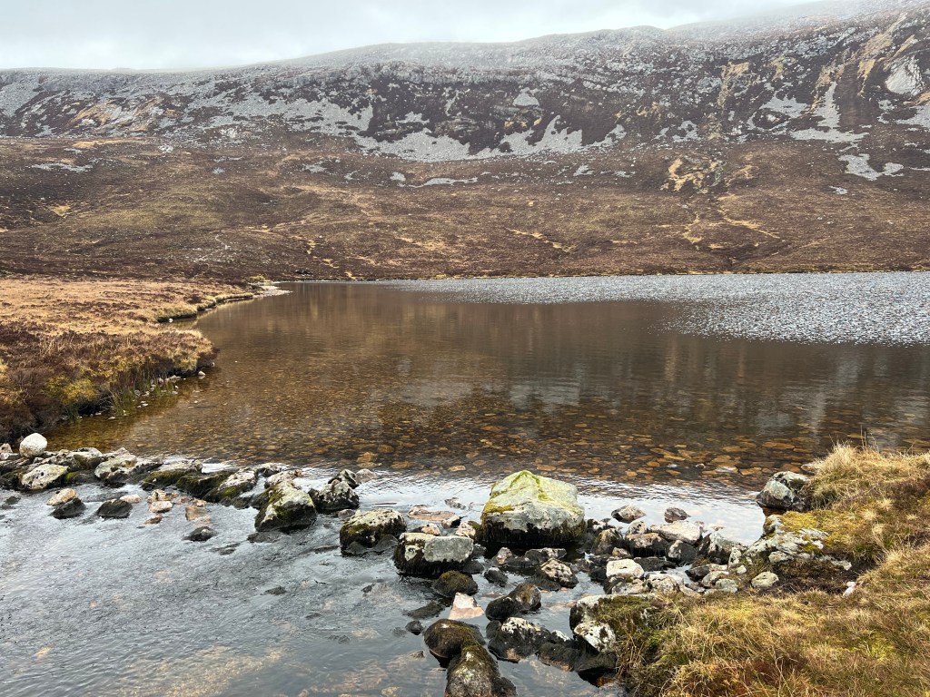dry feet crossing with stepping stones by Loch Fleodach Coire