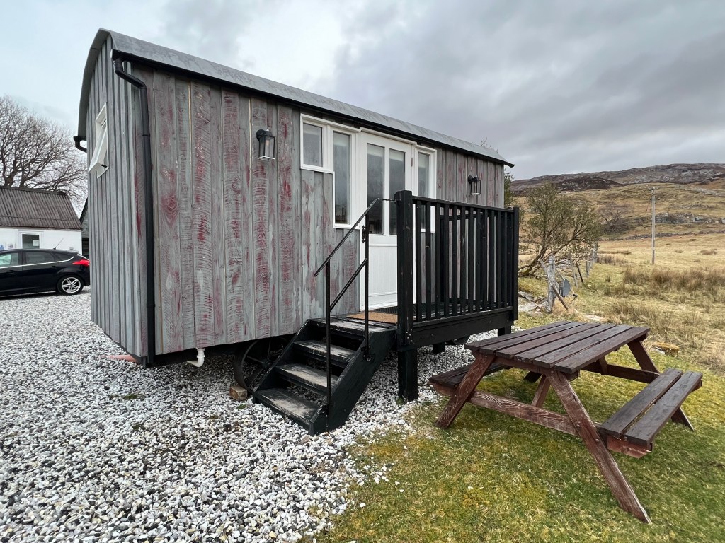 cozy shepherd’s cabin at Inchnadamph Lodge