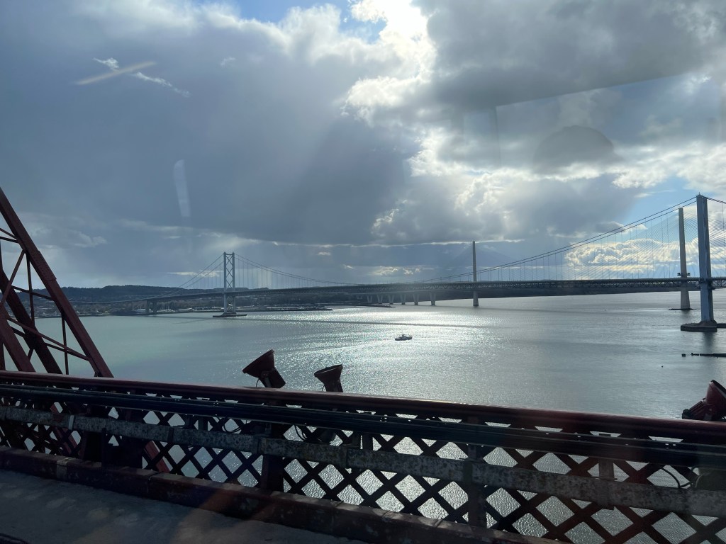 somewhere over the green Scottish ‘lowlands’ …and arrive almost 20 minutes early in even more sunny and spring-like Edinburgh.