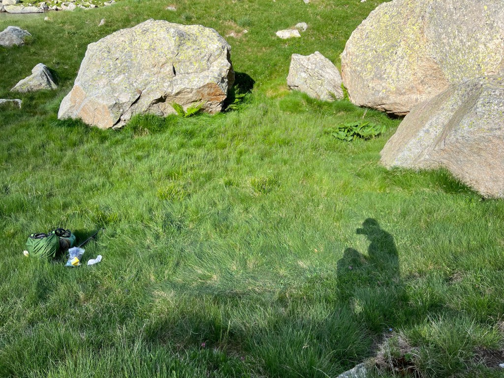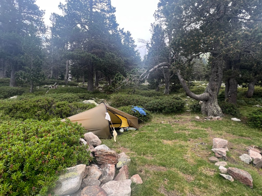 set up bivouac near Bassa de Sobriu (approx. 1910m asl)