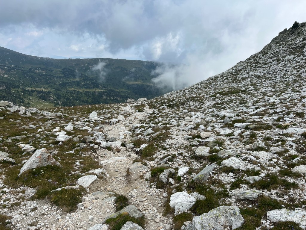 just before Refuge de Pla Guillem, running away down into France from the Spanish thunder storm rolling in over the Canigó massiv